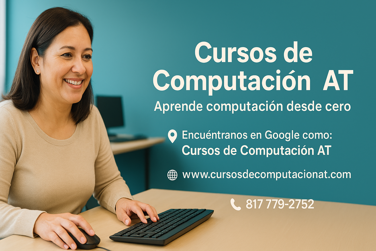 Cursos de Computación AT ofrece cursos de computación para adultos con clases uno a uno, ideales para principiantes que desean aprender computación básica desde cero.